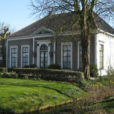 Hoeve "Landlust". Boerderij, waarvan woon- en bedrijfsgedeelte door een hoog rieten wolfdak worden overdekt. Voorgevel met vlechtingen. Links onderkelderd. Zomerhuis onder zadeldak. 18e eeuw.