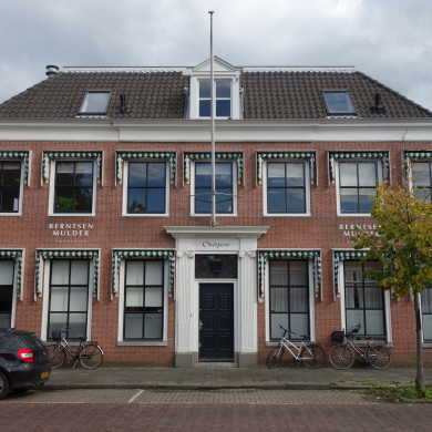 "Overpost". Herenhuis met verdieping en houten kroonlijst, tweede kwart 19e eeuw. Deuromlijsting met gecanneleerde pilasters met Jonische kapitelen.Vensters met zes- en vierruitsschuiframen.