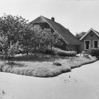 Mooie 18e eeuwse boerderij, goed bewaard, met rieten wolfdak, opgewipt boven de linker zijkamer. Vensters met goede roedenverdeling, begin 19e eeuw. Voorgevel met vlechtingen. Rechts onderkelderd. Zomerhuis onder zadeldak, derde kwart 19e eeuw.