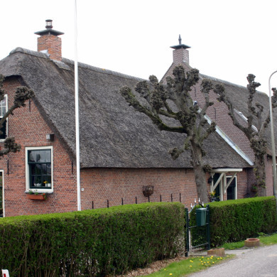 Hoeve "Landlust". Boerderij, waarvan woon- en bedrijfsgedeelte door een hoog rieten wolfdak worden overdekt. Voorgevel met vlechtingen. Links onderkelderd. Zomerhuis onder zadeldak. 18e eeuw.