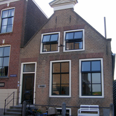 HUIS met lijstgevel met Lod.XVI-lijst (ca.1800), waarin triglyphen en metopen.