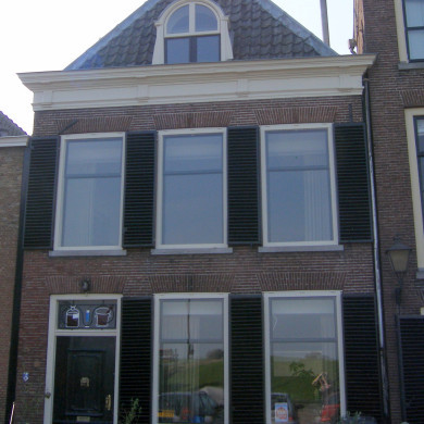 HUIS met lijstgevel met Lod.XVI-lijst (ca.1800), waarin triglyphen en metopen.
