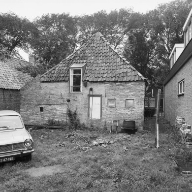 Pand met N.Holl. gevel met klimmende pilasters, 1625, achterzijde aan Torenstraat.