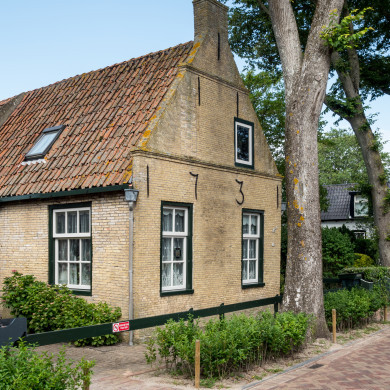 Karakteristiek Amelander huis onder zadeldak tussen topgevels.