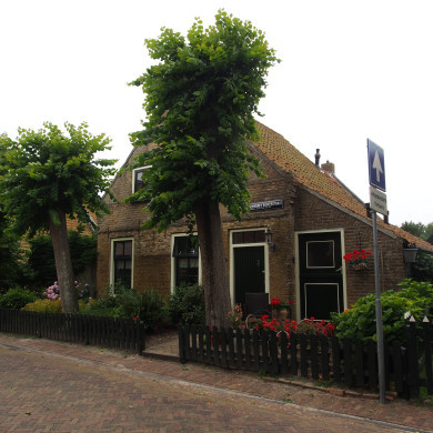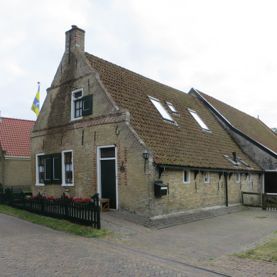 Karakteristiek Amelander huis onder zadeldak tussen topgevels.
