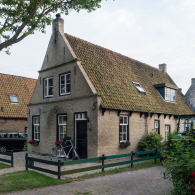 Karakteristiek Amelander huis onder zadeldak tussen topgevels.