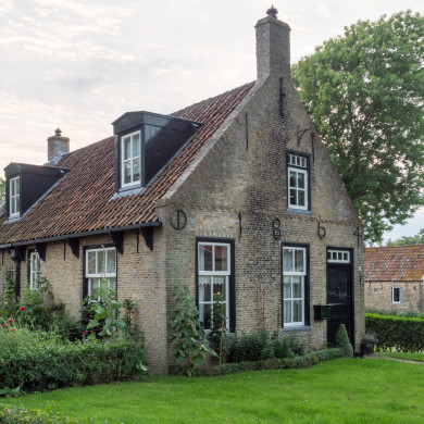 Karakteristiek Amelander huis onder zadeldak tussen topgevels.