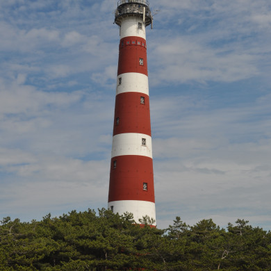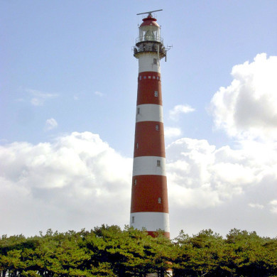 Uit 1880 daterende, ronde, conische, gietijzeren vuurtoren naar ontwerp van Q. Harder en uitgevoerd door gieterij Nering Bögel. De toren is 46 m. hoog, is beschilderd met horizontale rode en witte banden en heeft 14 etages. Rond het gietijzeren lichthuis met koperen koepel bevindt zich een omloop rustend op consoles en voorzien van classicistische balustrade, tweede omloop met balustrade rondom onder de vensters van het lichthuis. Rechtgesloten toegangsdeur met daarboven een gedenkplaat en rechtgesloten vensters met tracering. Gietijzeren trappen en kuip.