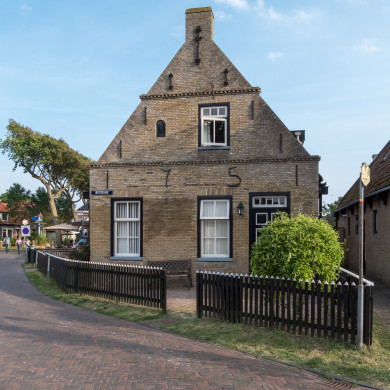 Karakteristiek Amelander huis onder zadeldak tussen topgevels.