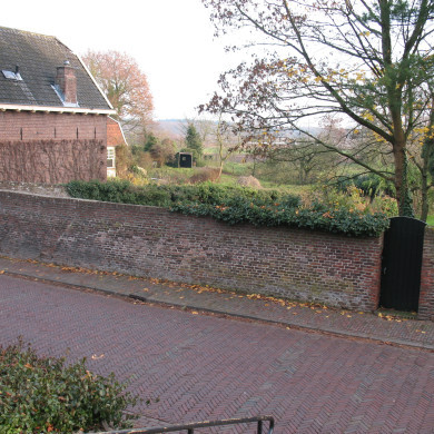 Bakstenen tuinmuur met rollaag, 18e eeuw.