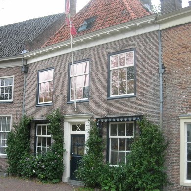 Huis met witgepleisterde gevel onder kroonlijst XVII.
