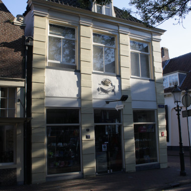 "De gekroonde Byenkorf". Huis met halsgevel met op de uiterste hoeken vazen, beeldhouwwerk, guirlandes en jaarlint 1687. Pakhuis in de Coninckstraat.