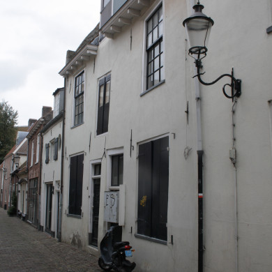 Pand, deel uitmakend van groep van drie woningen. In opzet 16e eeuws huis. Boven de tweede verdieping een overstekende op korbelen rustende rand.