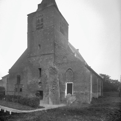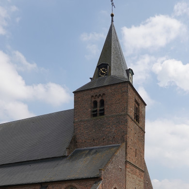 Herv. kerk. Laatgotische dorpskerk met pseudobasilicaal schip, midden 16e eeuw, opgetrokken bij een oudere toren (apart monumentnummer 8110). Het in 1842 gesloopte koor is herbouwd bij de restauratie na de ernstige beschadiging van het bouwwerk in 1944-'45.