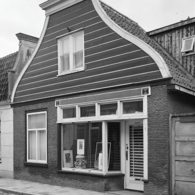 Pand met afgeknotte houten lijstgevel, 19e eeuw.
