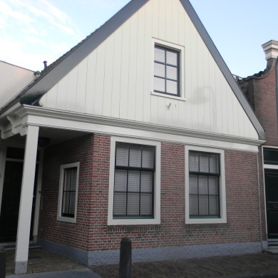 Pand met afgeknotte houten lijstgevel, 19e eeuw.