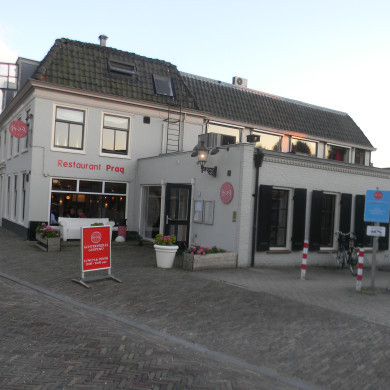 "De Oude Prins", gepleisterd in wezen fraai huis uit de 18e eeuw, strakke gootlijsten.