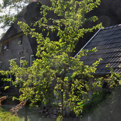 Boerderij, blijkens jaartalankers in de achtergevel van de stal daterend uit 1801. Hoog, met riet gedekt wolfdak. In de gepleisterde voorgevel een venster met een kalf kruiskozijn en luiken en vensters met negenruitsschuiframen.