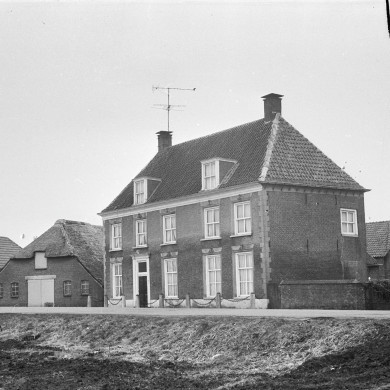 HERENHUIS, omstreeks 1800, met verdieping en hoog schilddak, waarop hoekschoorstenen.