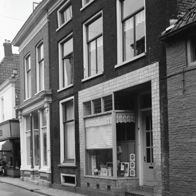 In aanleg 18e eeuws, twee bouwlagen tellend, onderkelderd pand onder pannengedekt schilddak tegen rechte, eenvoudige geprofileerde 19e eeuwse lijstgevel aan voorzijde; twee topschoorstenen; staafankers. In de voorgevel keldervenster, T-vensters, liggende zoldervensters en verstorende winkelpui; in de achtergevel 18e eeuwse kozijnen met zesruits-verdeling.