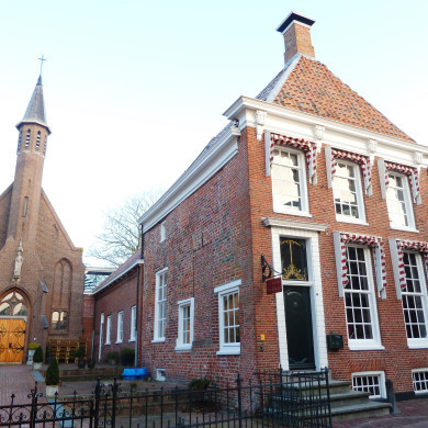 In aanleg vermoedelijk 18e eeuws verdiepingloos pandje onder pannengedekt schilddak. Van de eind 19e eeuwse lijstgevels is die der achterzijde voorzien van een blokbepleistering; vensters van verschillende soort en afmeting; linkerzijgevel dichtgezet; staafankers.