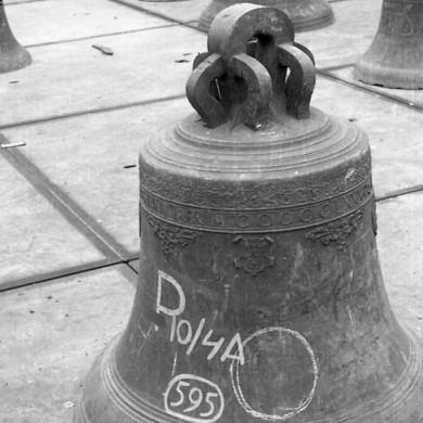 Klokkenspel, waarin 8 klokken werden gegoten door P. van den Ghein (I) 1554/57 en 1 door P. van den Ghein (II) 1593. (Gedeelte van het spel, dat tot 1962 in het Rijksmuseum te Amsterdam heeft gehangen).