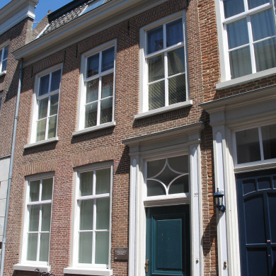 Huis met gepleisterde lijstgevel met steen: 1629, verhoogd negentiende eeuw.