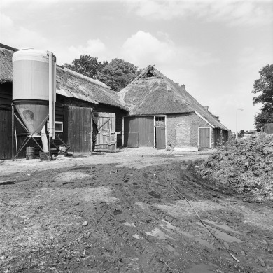BOERDERIJCOMPLEX, met jaartalsteentje bij achterdeur 1835, bestaande uit dwars voorgebouwd woonhuis onder rietgedekt schilddak en haaks daarop aangebouwd bedrijfsgedeelte onder aan achterzijde afgewolfd rietgedekt zadeldak met uilebord.