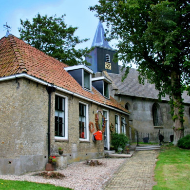 Herv. Kerk en kerkhof. Klein eenbeukig kerkgebouw van baksteen met halfronde sluiting, 15e eeuws met dakruiter boven de westgevel. In de kerk 17e eeuwse preekstoel, doophek en twee banken met bollen op de hoeken. Verlichting door middel van oliehanglampen. Orgel gemaakt door W. Hardorff. Klokkenstoel met klok van H. Falck, 1619, diam. 78,5 cm. Mechanisch torenuurwerk B. Eijsbouts, Asten, 1926, nr. 909.