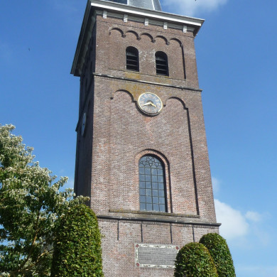 In 1868 gebouwde toren der 16e eeuwse Hervormde Kerk. Eenvoudige, uit grauwe baksteen opgetrokken toren in neo-romaanse vormen, bekroond door leien gedekte ingesnoerde naaldspits met koperen haan; halfrondgesloten deur- en vensteropeningen; spaarvelden met rondboogfriezen waarin uurwerk en galmgaten; goot op klossen. Klokkenstoel met gelui van twee klokken, waarvan één van G.van Wou, 1499, diam. 104,2 cm. en een moderne klok. Mechanisch torenuurwerk H.Bloksma, 1878, later voorzien van electrische opwinding.
