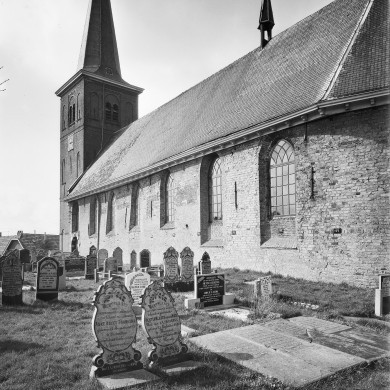 Complex bestaande uit de HERVORMDE KERK met aangebouwde SACRISTIE en bijbehorend KERKHOF met HEKWERK op KEERMUUR.