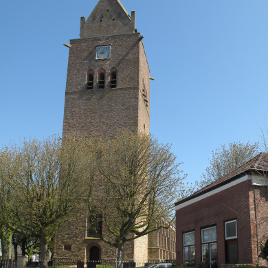 Herv. Kerk, op ruim kerkhof. In aanleg nog romaans bakstenen kerkje met halfrond gesloten koor aan de zuidzijde in de 18e of 19e eeuw bemetseld. Klokkenstoel met klok van een anonieme gieter zonder opschrift, 13e eeuw? diam. 75 cm. In de kerk grote XVIe eeuwse zerk.