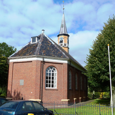 N.H. Kerk op omheind kerkhof. Eenvoudig driezijdig gesloten zaalgebouwtje met achtzijdige dakruiter boven de driezijdig uitgebouwde westzijde. De halfrond gesloten vensters staan in door lisenen gevormde rechthoekige velden; omlijste ingang. Eenklaviers orgel in 1841 gemaakt door G.W. Lohman. Mechanisch torenuurwerk, "Concordia", W.J. Koek, Midwolda, later voorzien van electrische aandrijving.