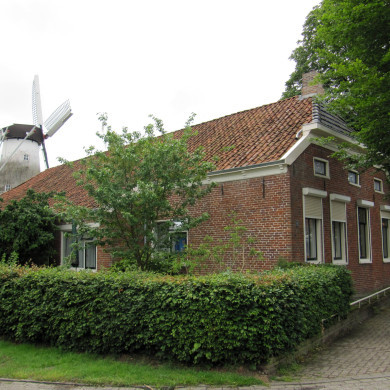 Molenaarshuis. Woning met aangebouwde schuur in verkleinde vorm van een Oldambtster boerderij. Aan de voorgevel vier vensters en drie zoldervensters onder het voorschild van de kap; lijsten langs voor en zijgevels.