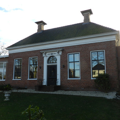 Tot rentenierswoning verfraaid boerderijtje, waarvan de topgevel op twee kleine lichtopeningen na gesloten is. Beganegrond verfraaid door middel van omlijste ingang met gegroefde pilasters en forse kroonlijst, zesruitsvensters en gootlijst op consoles langs de zijgevels.