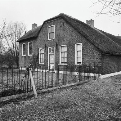BOERDERIJ uit het einde van de 17e, of begin 18e eeuw, onder rieten zadeldak aan de voorzijde met wolfeind. De voorgevel heeft vlechtingen en sierankers. Links een onderkelderde opkamer. Vensters met zesruitsschuiframen; deur met panelen en bovenlicht met gietijzeren levensboom.