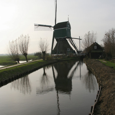 BOERDERIJ (XVII) onder strodak, met aan de voorzijde een gepleisterde, afgeknotte puntgevel met oude kozijnen, luiken en roedenverdeling en in het zoldervenster een kruiskozijn met diefijzers. Muurankers. Aan de zijkant een gepleisterde puntgevel evenals aan de achterzijde.