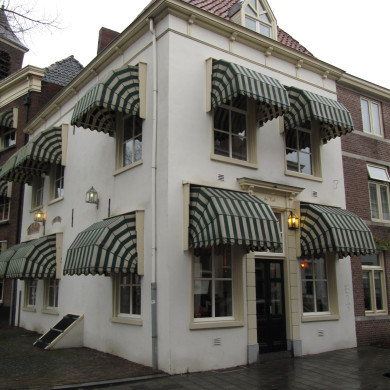 Het Spuihuis, een rechthoekig gebouw welks voorgevel (XVIII B) wordt versierd door bakstenen pilasters en een fronton, terwijl de overige gevels ouder metselwerk (XVI ?) bevatten. Boven de gevel verheft zich een bakstenen torentje met korte leien spits.