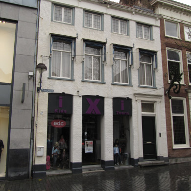Huis dat als geisoleerd blok op het Zuivelplein staat, op de plaats waar zich vroeger de Waag bevond. Eenvoudige witte lijstgevels, aan de kant van de Zuivelstraat kroonlijst met klossen.