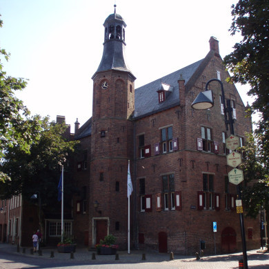 Stadhuis. Laat-gotisch gebouw op rechthoekige plattegrond met aan de korte zijden puntgevels, waartussen hoog zadeldak. Tegen de vrijliggende oostgevel veelhoekige bakstenen traptoren, waarin de toegang, gedekt door een helm met koepeltje. Driedelige, tongewelfde kelder. Luiklok (1526) van Segewinus Haytyseren.