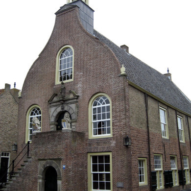 Stadhuis. Gebouw op rechthoekige plattegrond, in oorsprong XVII, verbouwd XVIII. Klokgevel, waarvoor bordes met wapenhoudende leeuwen en met natuurstenen deuromlijsting, bekroond door gebroken fronton met Justitiabeeld (XVII). Op het dak een eenvoudige houten klokkentorentje. Raadszaal met beschilderde beschotten (Justitia-voorstelling en wapens, 1642 en 1768), alsmede twee archiefkasten uit oorspronkelijk de zeventiende en achttiende eeuw, op maat gemaakt voor de toenmalige Gemeenlandskamer van het Hoogheemraadschap "de Ring van Putten".