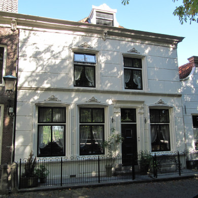 Huis met lijstgevel van drie vensterassen (ca. 1800). In oorspronkelijke gedaante twee verdiepingen. Bovenverdieping gesloopt 1921 (?). Deur met omlijsting van verdiepte pilasters met hoofdgestel; bovenlicht. Schuiframen het kleine roedenverdeling. Dakvenster. Stoeppalen met kettingen.