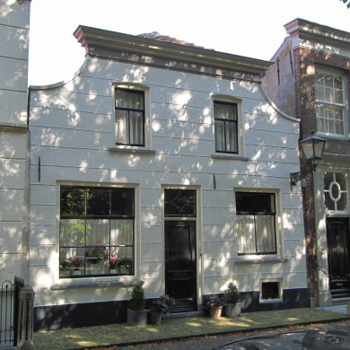 Huis met lijstgevel (XIX A). Onder een kroonlijst met nr 13. Deuromlijsting, consoles onder de kroonlijst. Gesneden deur. Oude raamkozijnen. Vensteromlijstingen en stucversieringen XIX B. Dakvenster met vleugelstukken. Eenvoudig stoephek tussen stoeppalen.