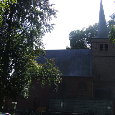 Nederlands Hervormde Kerk. Vijftiende eeuws bakstenen koor met driezijdige sluiting waarop een klokkentorentje; enig overgebleven onderdeel van de in de oorlog verwoeste kerk. Gerestaureerd in 1949.