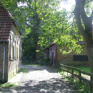 BOERDERIJ van het Kempische langgeveltype, genaamd 'de kleine Wamberg'. Een laan met beuken loopt van het hoofdhuis en de zogenaamde 'Grote Wamberg' (het jacht- en koetshuis) naar deze boerderij. Sinds ca. 1500 stond hier een boerderij. De huidige langgevelboerderij dateert vermoedelijk in oorsprong uit eind XVIII. Het woongedeelte heeft vensters met roedenverdeling Een oude kelder is nog aanwezig. Na een brand in 1968 is het stalgedeelte gerestaureerd. Aan de oostelijke korte gevel is (vermoedelijk in de jaren 60 van de twintigste eeuw) een woning gebouwd met huisnummer 16a, deze valt buiten de bescherming.