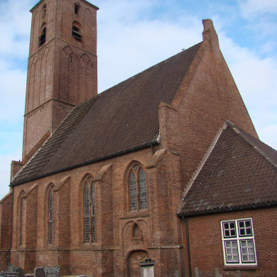 Schip en westtoren vormen de overblijfsels van een laatgotische kruiskerk XV. Stenen voet, XV, onder de preekstoel. Doophek, XVII. Tweeklaviers orgel met zelfstandig pedaal, gemaakt in 1905 door M. Maarschalkerweerd uit Utrecht. Klokkenstoel met gelui bestaande uit een klok van François Hemony, 1658, diam. 81,8 cm en twee moderne klokken.