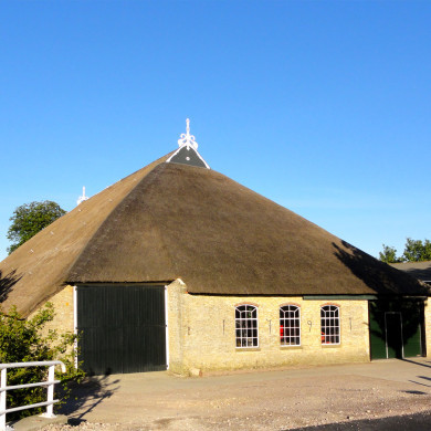 BOERDERIJ van het karakteristieke noordwest friese type. Inrit in de ene vleugelmuur; in de andere kelder drie zaadzoldervensters; kroonlijst met consoles.