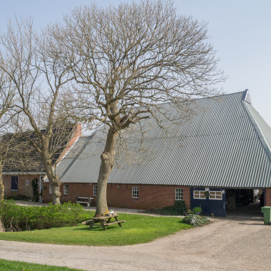 Z.g. strandhuis van het zeewerende Waterschap Het Oude Bildt. Blokvormig pand met verdieping onder schilddak met twee hoekschoorstenen. Regelmatig geplaatste vensters. Achter het pand schuur met nok evenwijdig aan die van het huis.