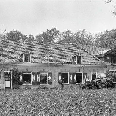 Boerderij, langhuis met topgevel, terzijde uitgebouwd kookhuis en afdak waarlangs duinbeek stroomt, zeer fraai gelegen.