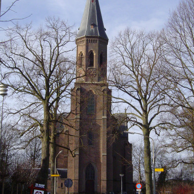 O.J.Vrouw ten Hemelopneming, 1858-1861, Th.Molkenboer, en architect Pelzer uit Kleef. Eenbeukige neogotische kruiskerk met gestucadoord houten kruisribgewelven en toren met achthoekige bovenbouw. Klokkenstoel met klok van François en Pieter Hemony, 1664, diam. 105 cm.